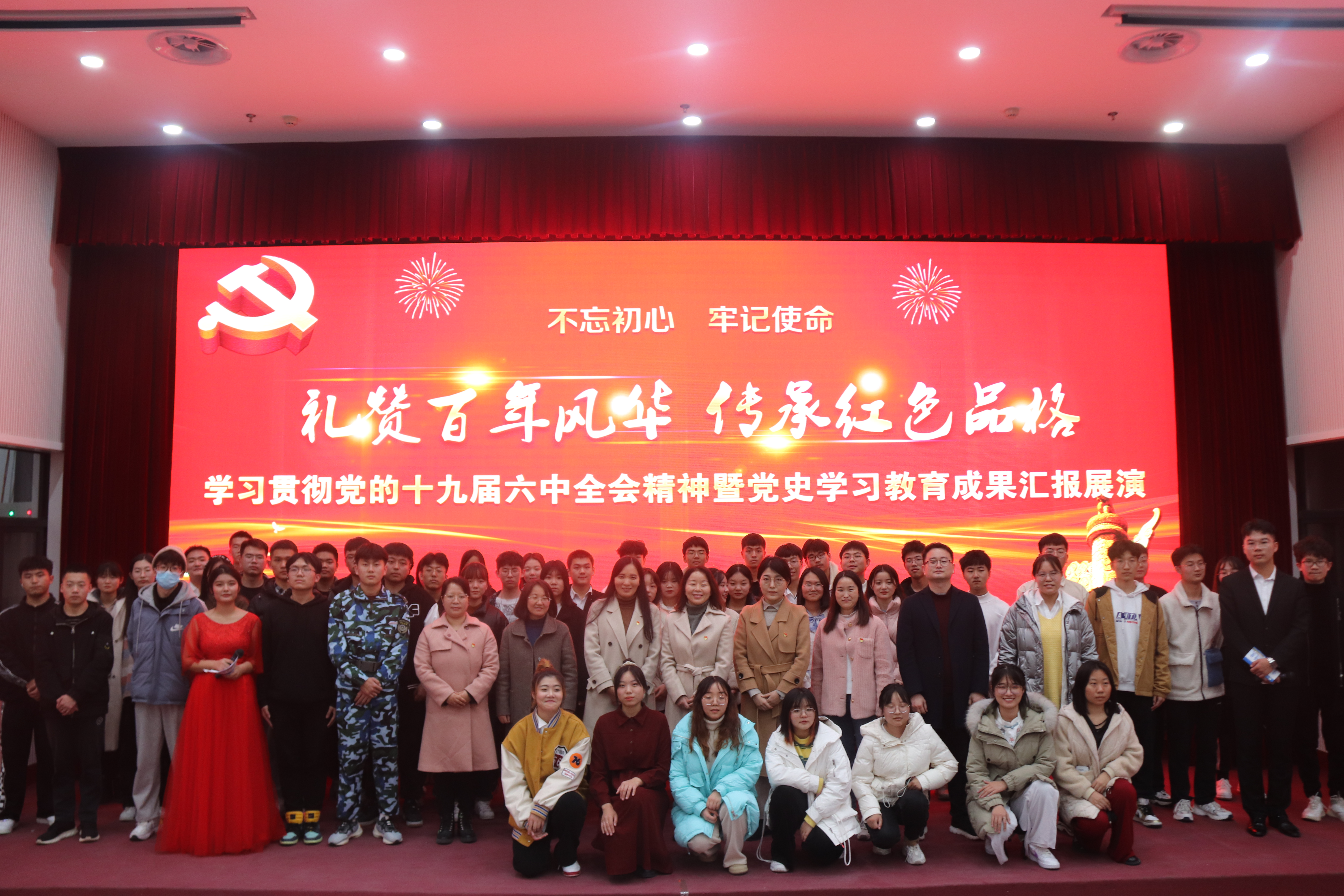 隆重举行“礼赞百年风华,传承红色品格”——学习贯彻党的十九届六中全会精神暨党史学习教育成果汇报展演。学院党委副书记陈景红、副院长杨璟、副院长李玲、团委书记王岚、地城系教工支部书记黄珺嫦、两办实验教工支部书记王俊倩及资环系教工支部马双龙参加展演活动。