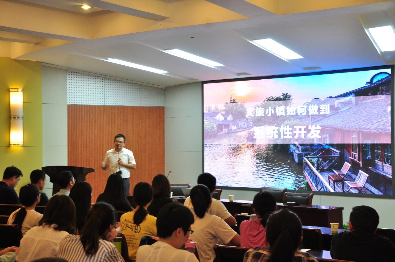 期间张彦涛给在校本科生和研究生们做了一场“文旅小镇如何做到系统性开发”的报告。报告首先分析了我国文旅产业的发展现状和趋势,然后详细阐述了文旅中 “寻找支点、灵魂定位、有处安放、鼓励浪费、有序推进、匠心运营和规避深坑”等问题,通过大量实际案例说明了文旅小镇系统性开发的方法与过程。