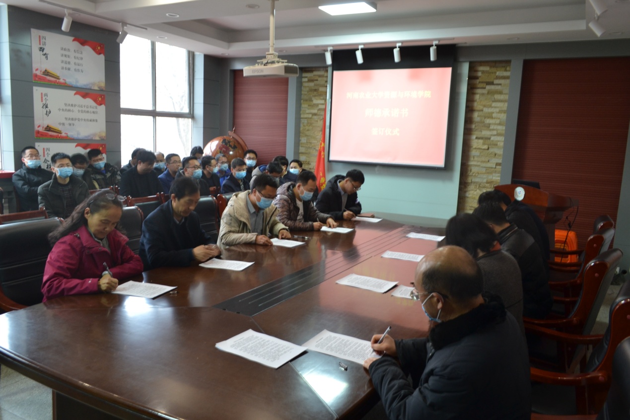 全体教职工于18号楼会议室举办师德承诺书签约仪式。会议由学院副院长刘世亮主持,全体教职工参加。