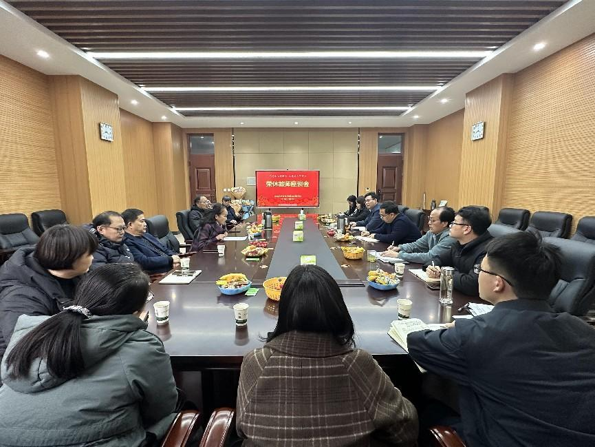 在力行楼中254会议室举行荣休教师座谈会。杨素勤、孟祥远、王文亮、毕庆生、朱嘉伟五位荣休教师,学院领导班子成员,各系室负责人参加座谈会。