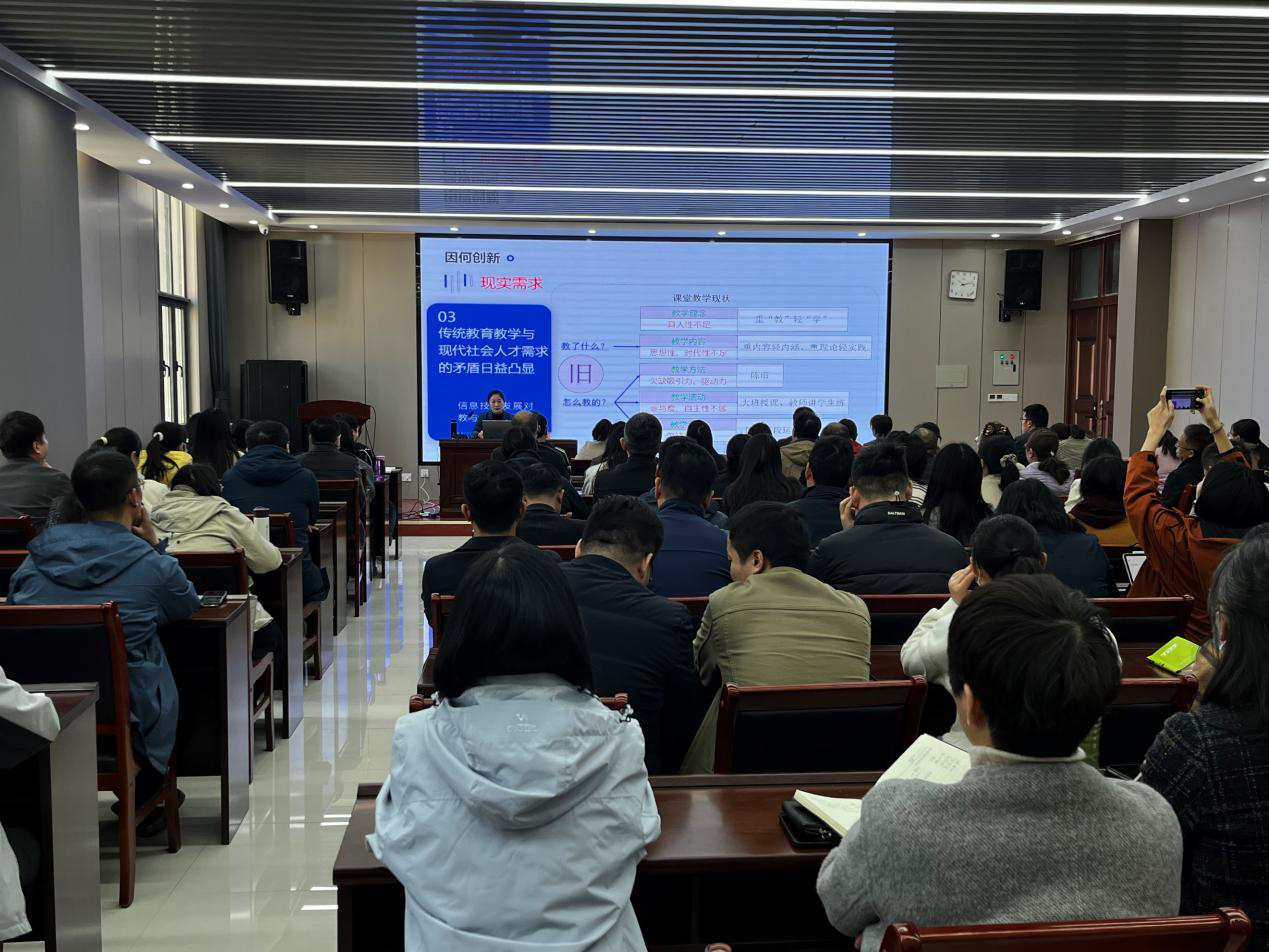 为持续提高本科教育教学质量,进一步提升教师教学创新大赛参赛水平,2024年3月20日上午,由我校教务处主办、成人网 承办的2024年第一期教师沙龙活动在力行楼中-338报告厅开展。首批国家级一流课程负责人、河南省课程思政样板课负责人、河南省研究性教学示范课程负责人、河南省教学标兵、河南大学新闻与传播学院冯媛媛副教授应成人网 邀请,作了题为“以学生为中心,唤醒、赋能、成长、成才——关于教学创新及创新大赛的思考”的报告,我校教务处相关领导和130余名教师参加了此次教师沙龙,活动由副院长李玲主持。