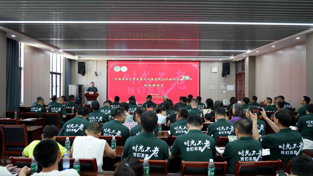返校校友集体参观了文化路校区和龙子湖校区。院长王宜伦主持座谈会,致辞热烈欢迎并感谢祝福校友们,从学科建设、人才培养、科技创新和社会服务等方面介绍了学院基本情况。“重回课堂、教师授课、现场考试和座谈交流”等环节,让校友们沉浸式回到了大学时光。介晓磊,王文亮、杨素勤、韩燕来分别以《农业化学总论》和《土壤农化分析》等课程为切入口,从专业讲到职业,从做事谈到做人,在人生感悟、专业发展等方面给大家交心谈心、解惑答疑,又一次给予谆谆教诲和殷殷希望。刘世亮对每个班级进行授旗,并和班主任田志强、薛晓亚、苗玉红发言激励祝福校友们。每位同学依次汇报了毕业后的工作和生活状况,表达了对母校和各位老师的感恩感谢,并送去满满的美好祝福。