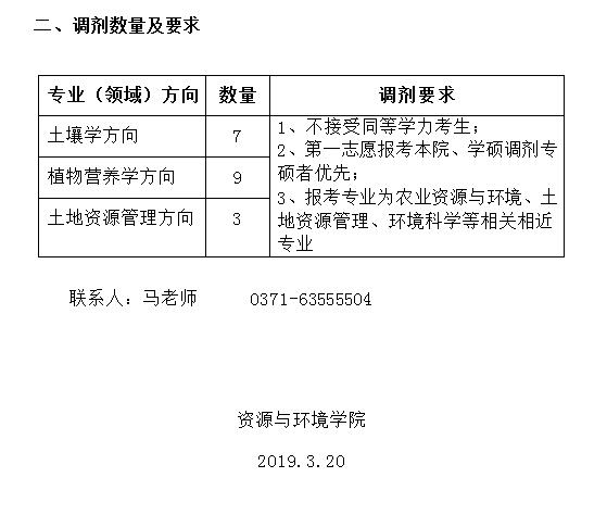 成人网 2019年农业硕士(资源利用与植物保护领域) 研究生招生调剂工作办法