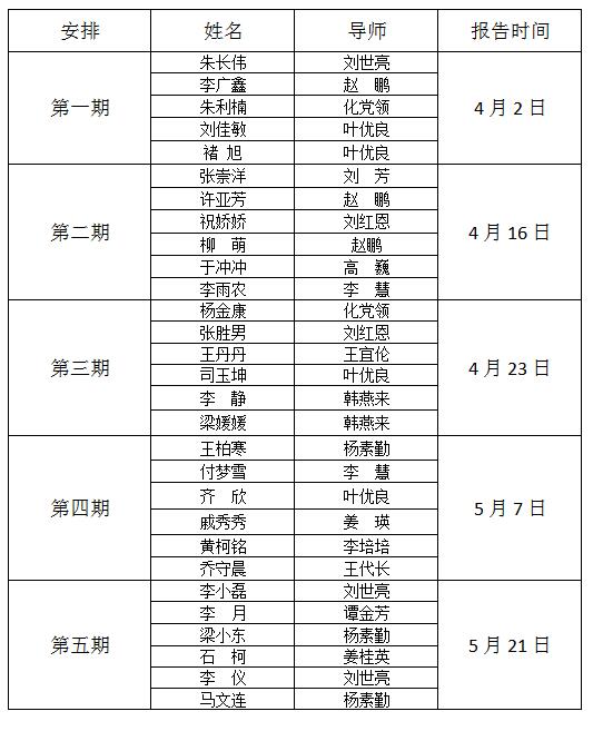 2018-2019学年第二学期资源与环境专业研究生学术论坛安排
