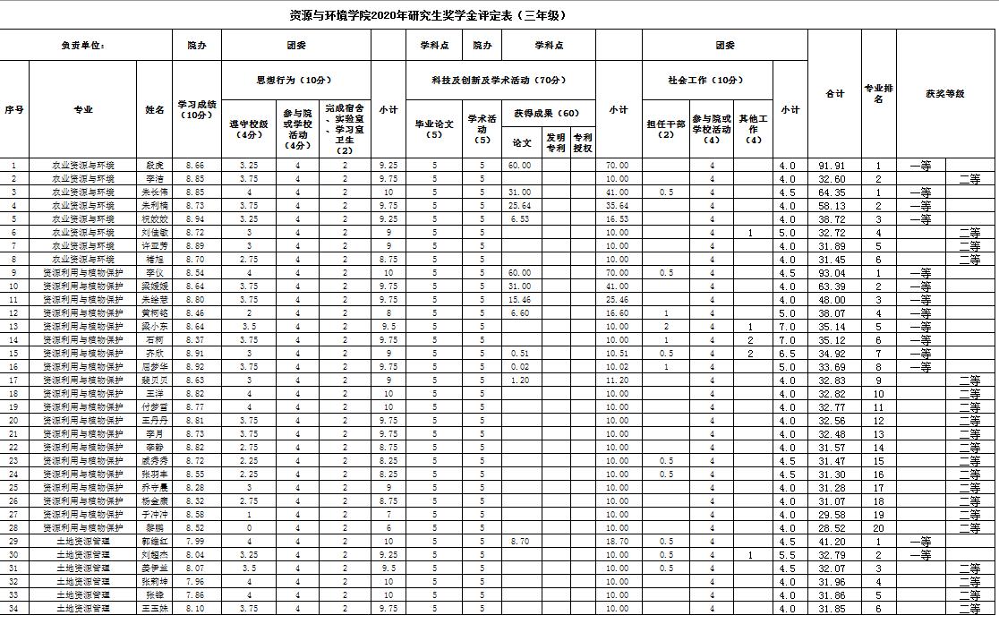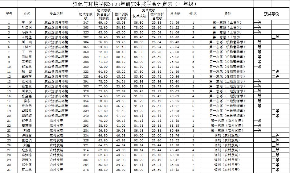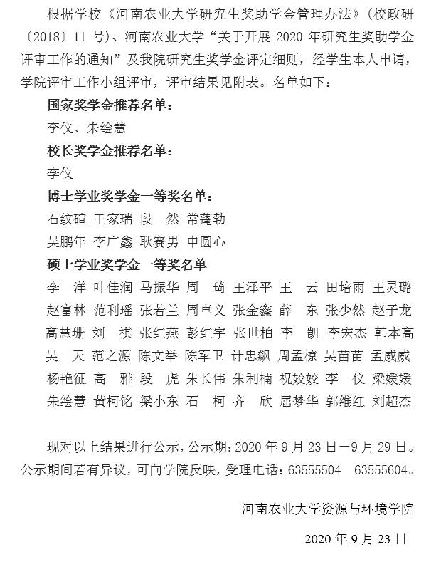 成人网 2020年硕士研究生国家奖学金、校长奖学金、博士学业奖学金、硕士学业奖学金 评审结果公示