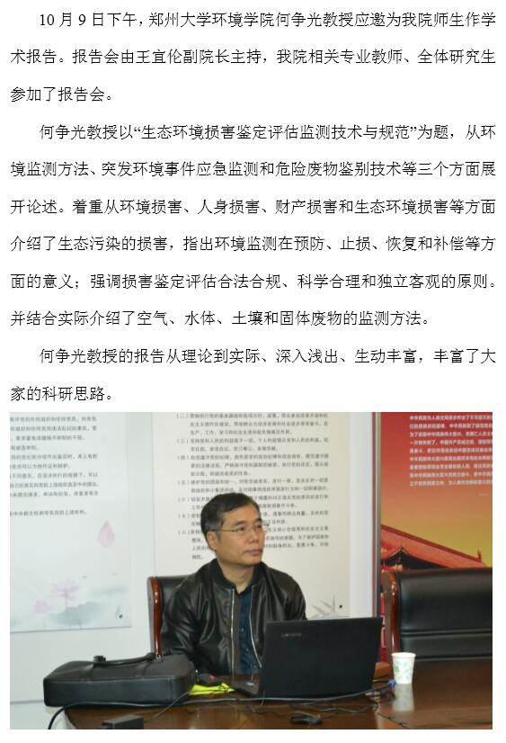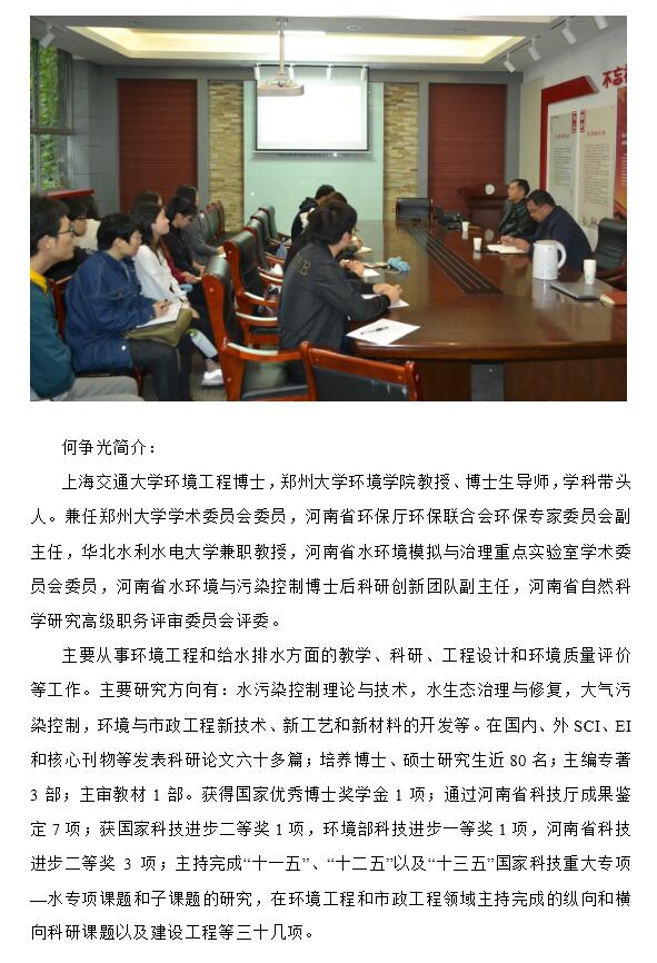 郑州大学环境学院何争光教授来成人网 做学术交流