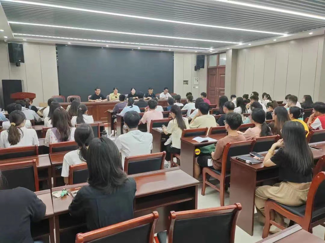 于力行楼338会议室召开新学期学生干部会议暨秋季学期工作部署会,学院团委书记王岚,党委组织员胡明阳,团委副书记黄春萌,团委老师高博强、邓晓铮,各年级班长支书,团委学生会主席团及团委委员参加会议。