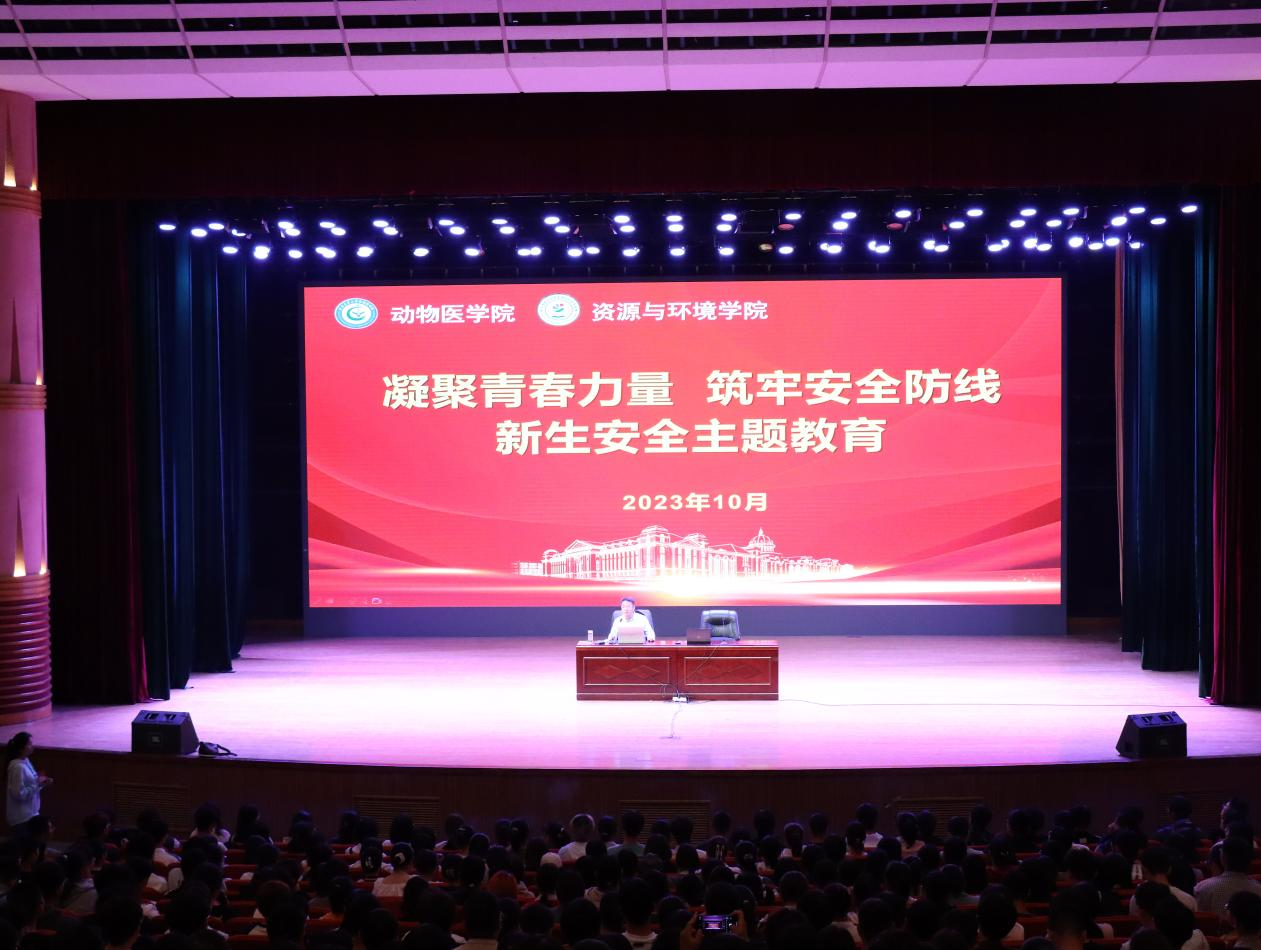 联合动物医学院在文化路校区千人大礼堂举行“凝聚青春力量,筑牢安全防线”新生安全主题教育大会。校保卫处副处长王德胜受邀作报告,两院辅导员及全体23级新生共同参与。