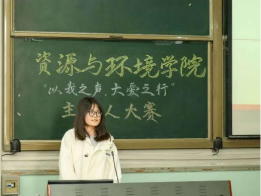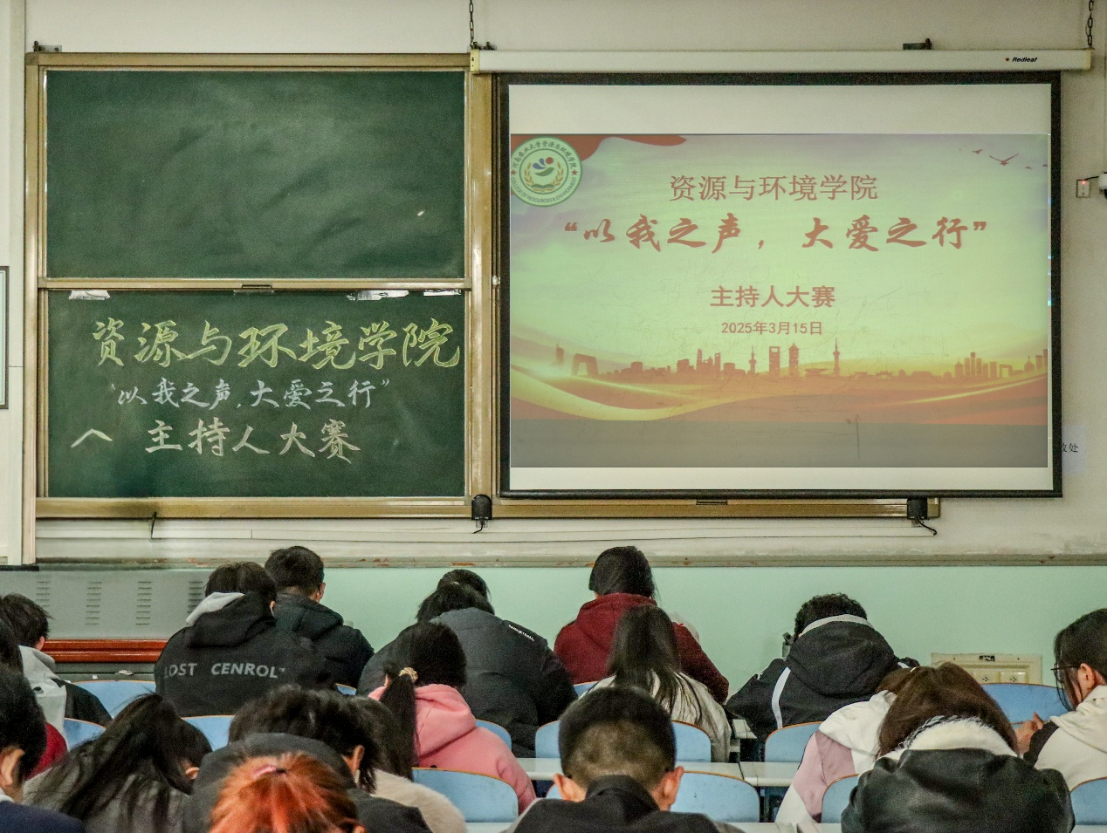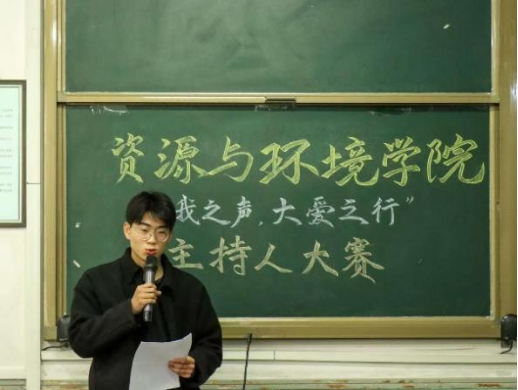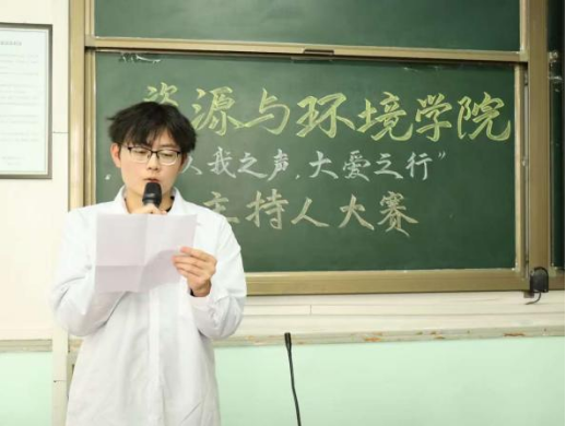 在文化路校区工程楼 206 教室举办 "小我之声,大爱之行" 主持人大赛。