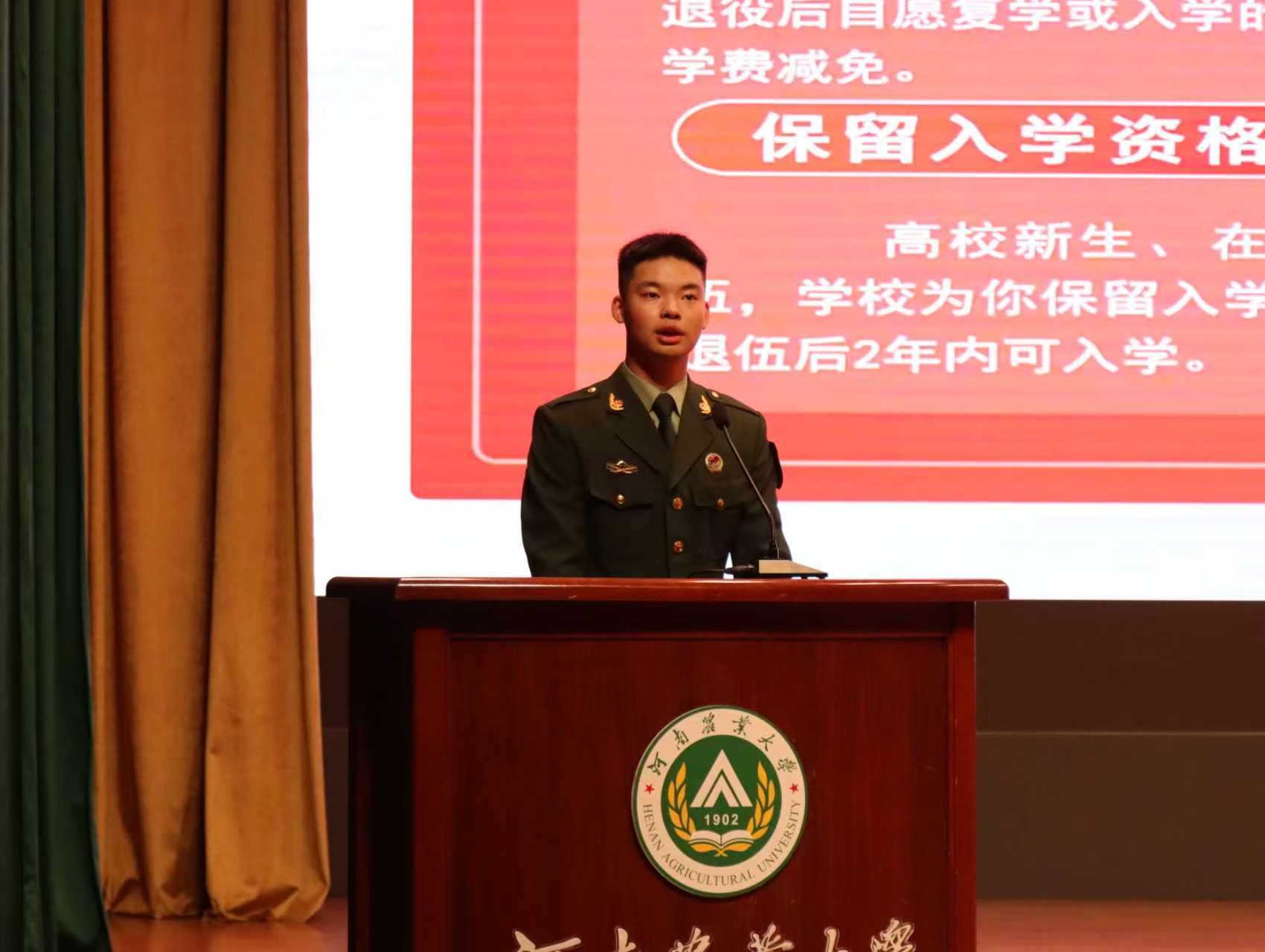 会上,学院特别邀请了方威、石家瑜两位退役复学的同学进行专题宣讲。两位同学结合自身服兵役经历,先后介绍了大学生入伍优惠政策、应征入伍条件和流程、退役优待保障等内容,让新生切实体会到参军入伍对于个人成长和国家安全的重要意义。