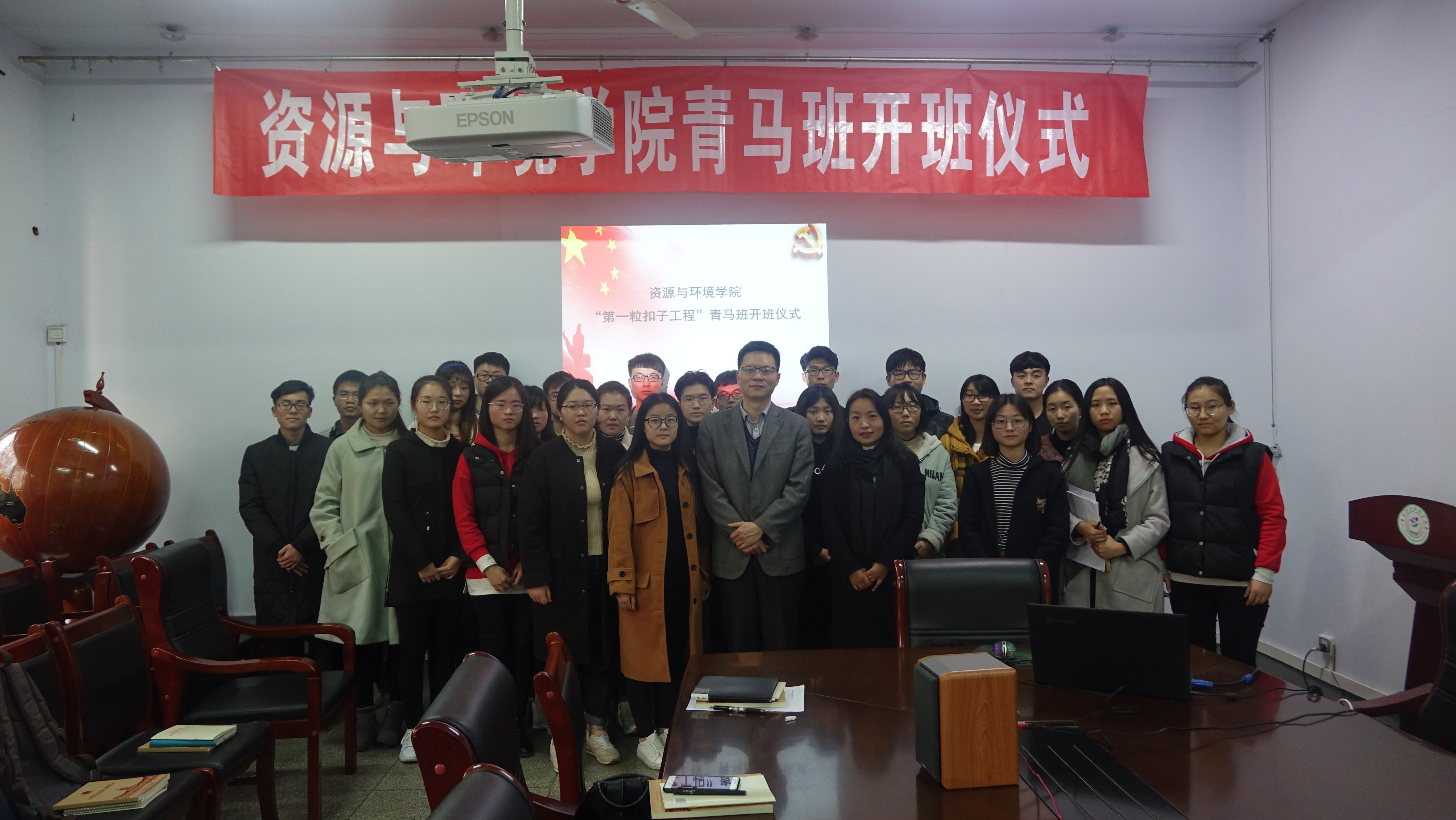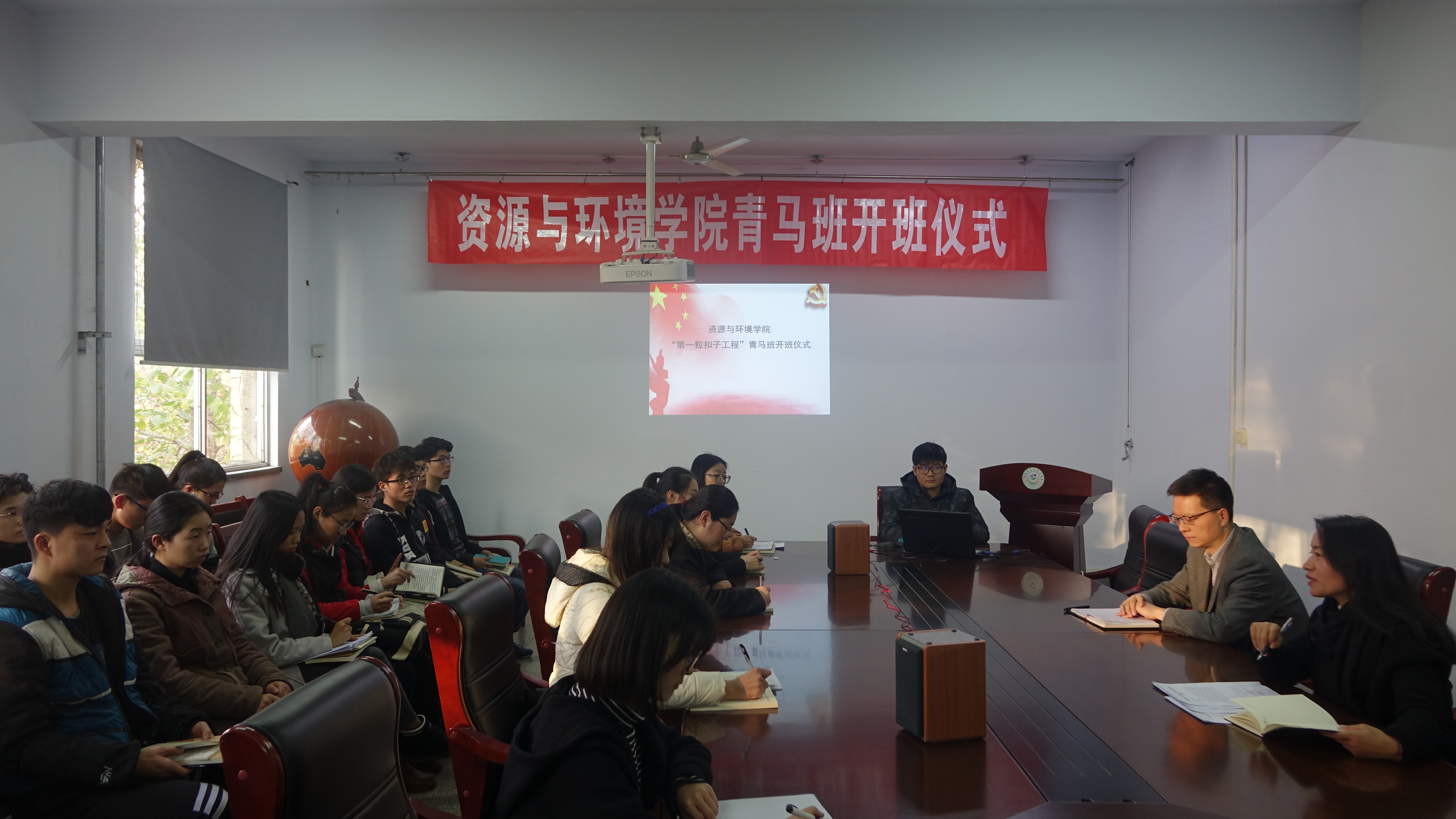 会议伊始,全体起立奏唱国歌。随后,王玲宣读了青马学员名单并提出青马培训班未来发展的实施方案。她详细阐述了青马培训班成立的宗旨,强调在国家发展的新形势下,我们要紧跟时代潮流,自觉学习马克思主义中国化的新思想、新理论,定期进行思想汇报和学习交流。最后,党委副书记李强在讲话中指出,党的十九大宣告我国进入了中国特色社会主义新时代,国家处于新的历史发展方位,前景十分光明,挑战也十分严峻。作为国家未来发展的中流砥柱,青年大学生应不断提高自身的思想道德修养,坚定马克思主义理想信念并将之发扬光大,为实现中国梦贡献自己的青春力量。