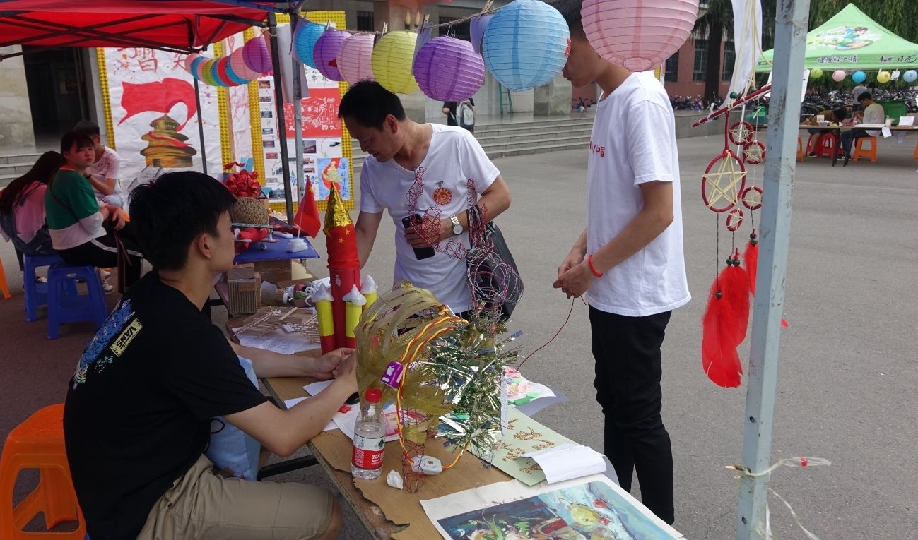 在3号楼前举办以“一懂两爱三有”为主题的第十二届手工艺品编制大赛,大赛作品展示为期三天。