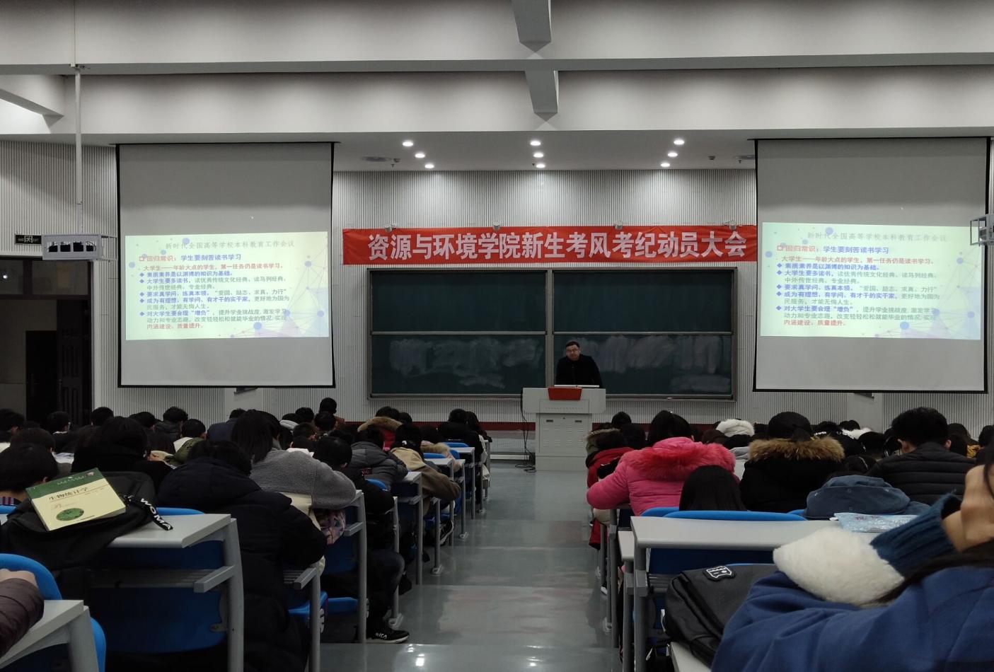 会上,王宜伦首先从本科教育工作会议“四个回归”谈起,提出大学生要回归常识,求真学问,练真本领,努力成为有理想、有学问、有才干的青年一代。其次王院长围绕正确认识考试、要诚信考试、加强诚信考试的举措、考试其他要求等方面进行详细讲解,要求同学们要调整好心态,正确对待考试;合理利用复习时间,认真备考,并着重就诚信考试向18级新生提出应严守考试纪律的要求。希望同学们以诚信考试为荣,以违纪作弊为耻,树立良好的道德品质,力争在期末考试中取得优异成绩。最后,教学秘书冯新伟就考场纪律及考试过程中的相关细节要求进行强调,并再次强调了诚信考试的重要性。