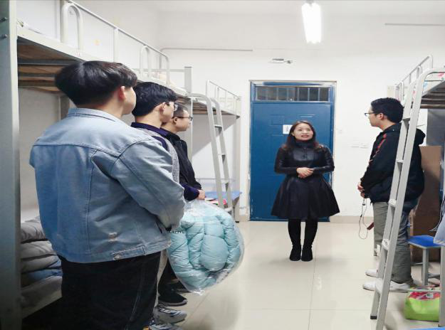 团委书记王玲和19级新生辅导员王龙老师于11月14日下午深入走访学生宿舍,为学生送去温暖,同时进行了学习方面的指导。
