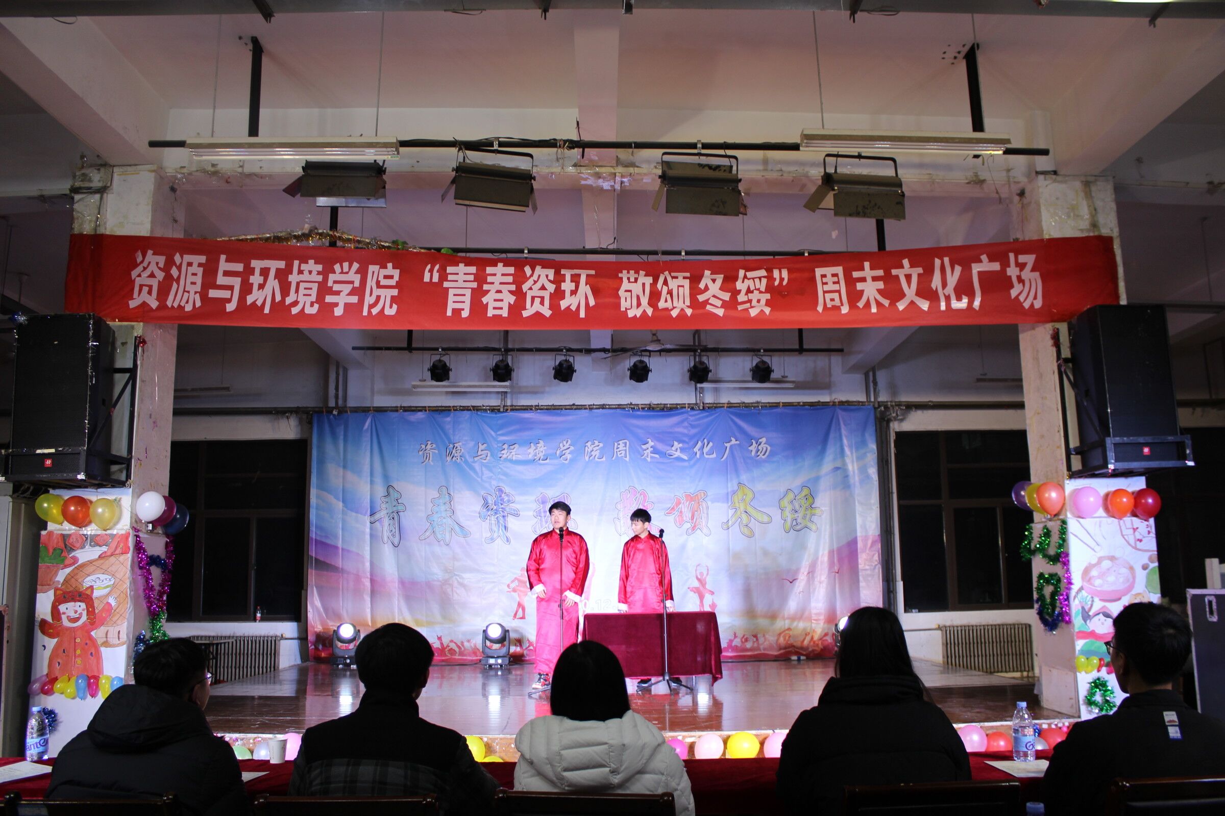 为进一步丰富校园课余文化生活,展现新时代大学生良好风貌,资环学院于12月20日晚上在龙子湖校区一餐厅三楼举行以“青春资环 敬颂冬绥”为主题的大型周末文化广场活动。学院党委副书记陈景红老师、2020级本科生辅导员胡明阳老师及学院全体新生参加了此次活动。